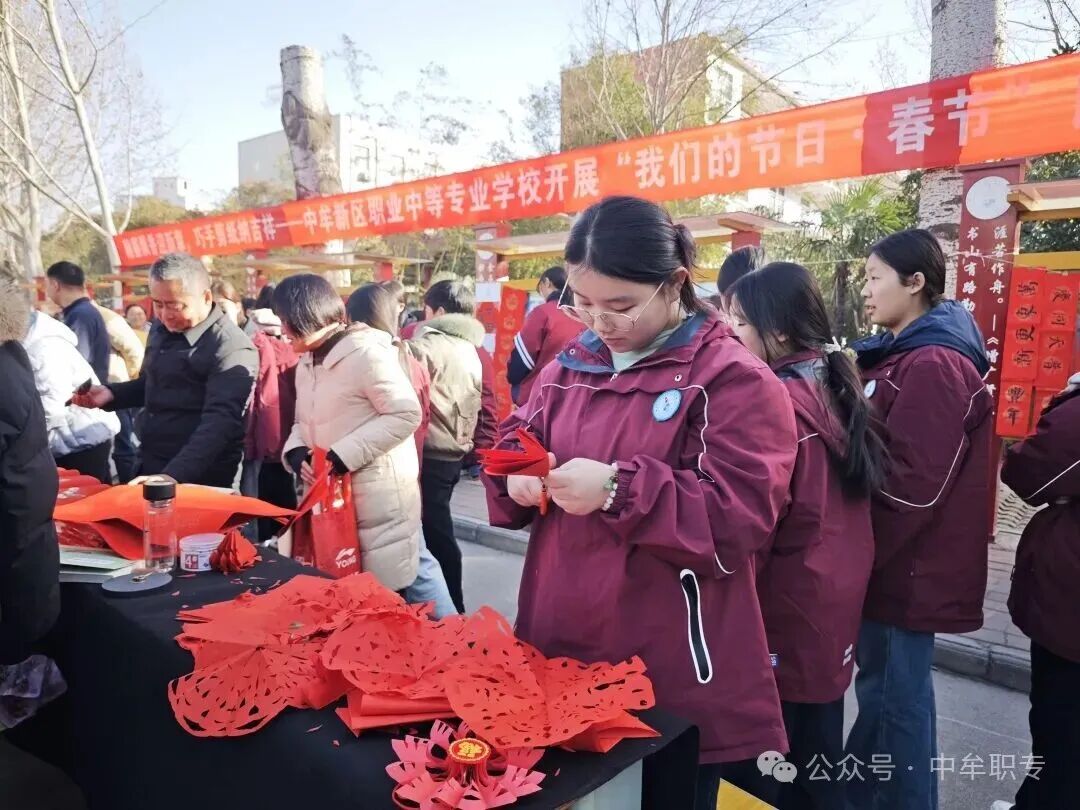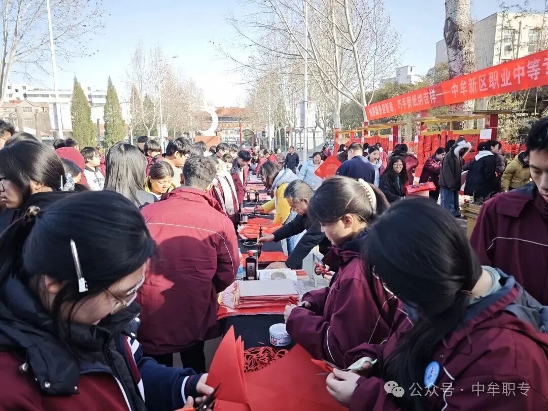 岁末临近,年味渐浓。为传承中华优秀传统文化,营造喜庆祥和的新春氛围,近日,中牟新区职业中等专业学校举办“翰墨飘香迎新春 巧手剪纸纳吉祥”民俗体验活动,全校师生齐聚一堂,以写春联、剪窗花等传统方式,共迎2026年农历马年春节。